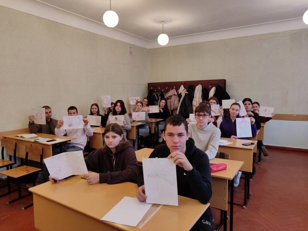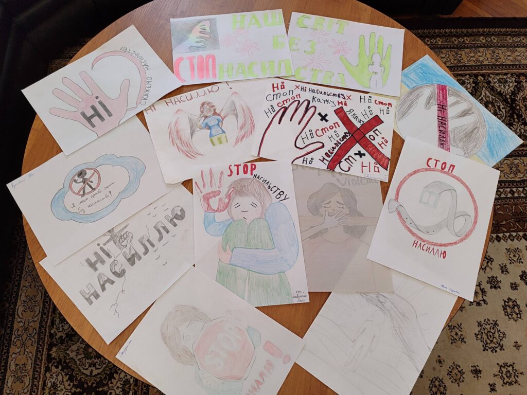 Група ГРС-11 проявила себе творчо: на занятті з дисципліни «Мистецтво» студенти створили малюнки на тему «Ми мріємо про світ без жорстокості!»